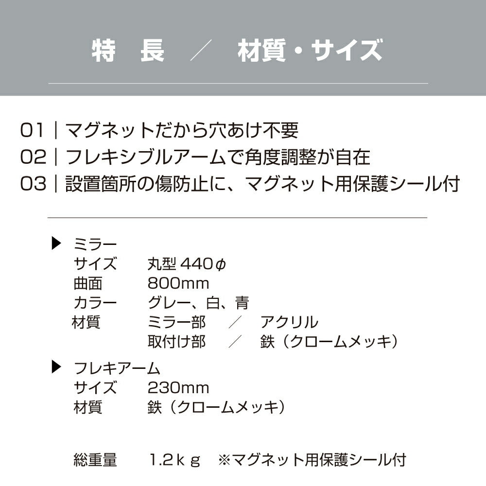| 備 考 | ●日本製 ※マグネット部分は必ず上下に設置して下さい。 ※下地が弱いと落下する恐れがあります ※ミラーの保護シートは剥がしてご使用ください |
