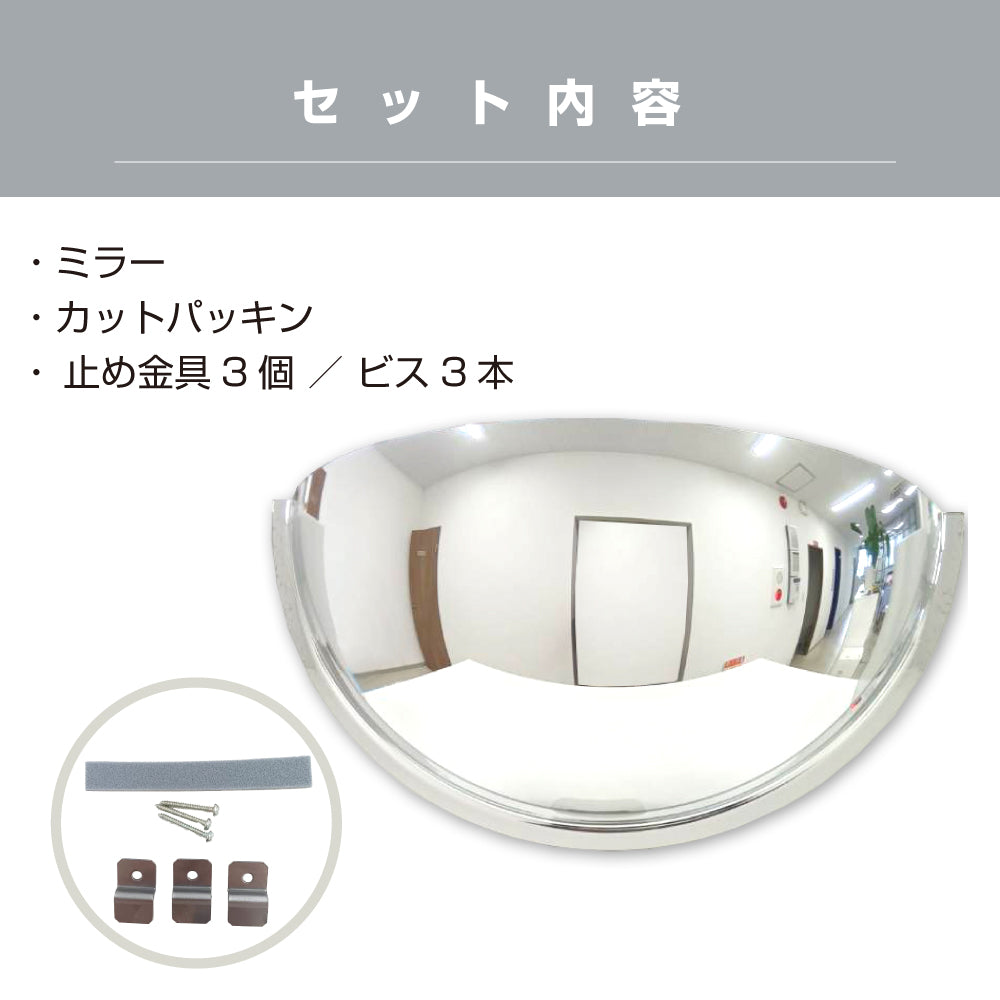 カーブミラー 室内 防犯ミラー 半球ミラーハーフ 約530×265×160mm アクリル製 死角 衝突 出合い頭 T字路 丁字路 学校 病院 老人ホーム 介護施設 ホテル 飲食店 倉庫 日本製 yh336