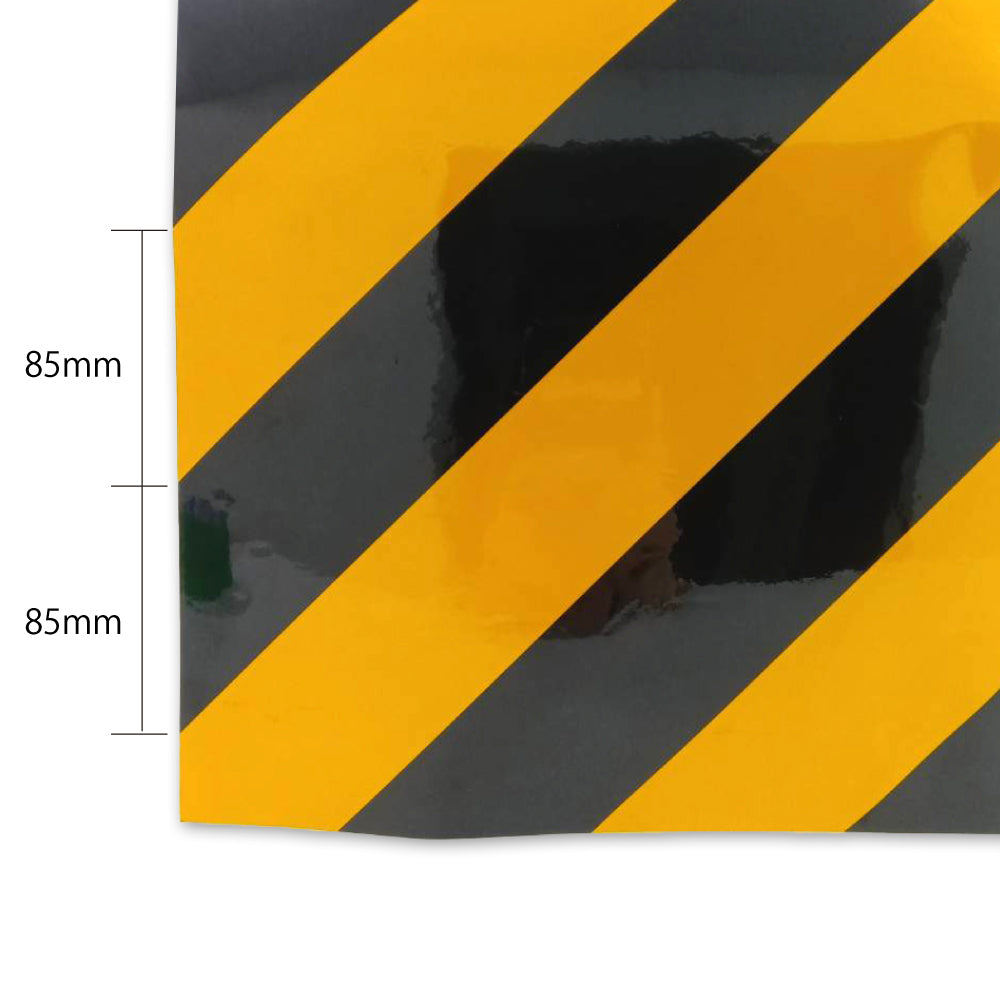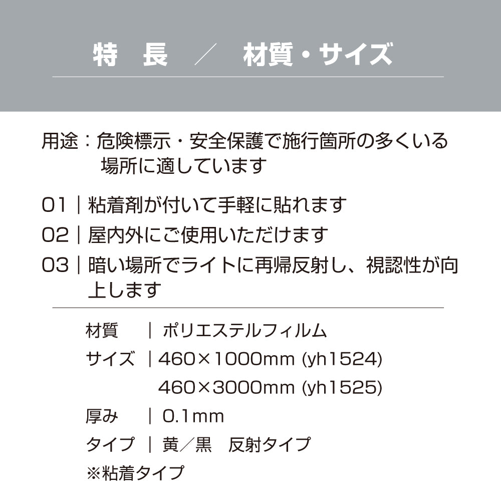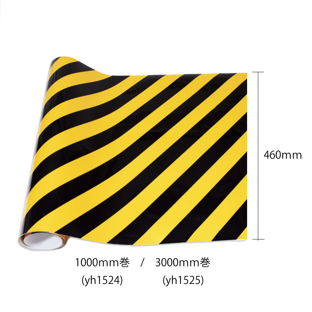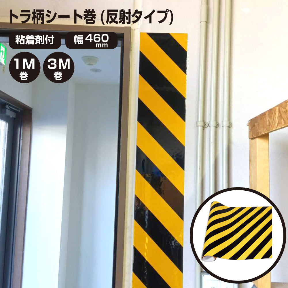 トラシート 黄黒 トラ柄 虎シート 厚み0.1mm W460 × 1000mm / 3000mm 反射シート 反射 車庫 貼付け 安全保護 安全 危険標示 電柱 円柱 支柱 駐車場 日本製 yh1524